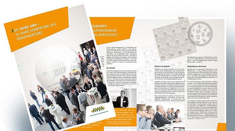 On the occasion of the 25th anniversary of AWA Entsorgung GmbH, TSCHAIKA has designed a brochure with lots of specialist information. In addition to the layout, we also did the editorial work.