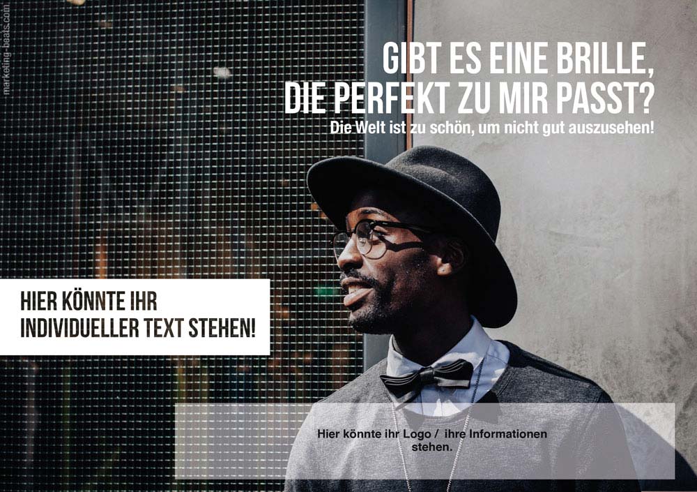 For many purposes, we offer price-conscious customers ready-made advertising campaigns, individualised on CD, digitally and in print. No matter if it is about advertising for the first pair of reading glasses, a stylish change to new glasses or an in-house exhibition.